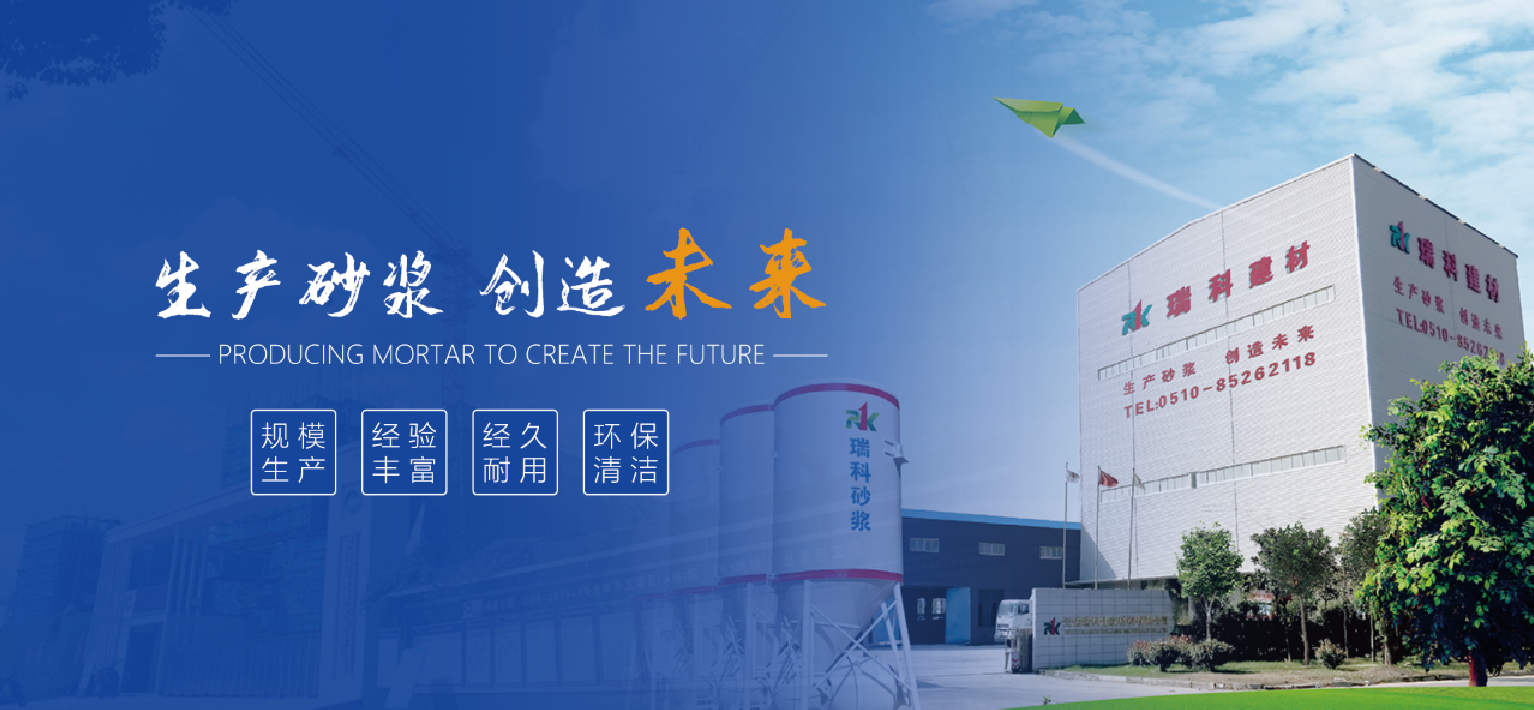 無錫瑞科建筑材料有限公司,是產、學、研相結合的現代化公司。是環保時代的產物,高技術的結晶。坐落于無錫市國家高新技術開發區內,距離無錫市中心僅10公里,緊靠京杭大運河,面對312國道,水陸交通運輸十分便利,為企業的發展創造了良好的條件。 總投資達八千萬元,是一家專業研究、開發、生產預拌特種砂漿、普通預拌干混砂漿等綠色節能建筑材料的環保型企業.市環保局審批了一條特種砂漿生產線、三條普通砂漿生產線,年設計生產能力可達100萬噸。